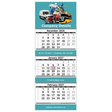 In addition to our standard freight calendar, we can produce different sizes, custom date pads, as well as a 5 panel with 4 months to view. Custom quotes available.